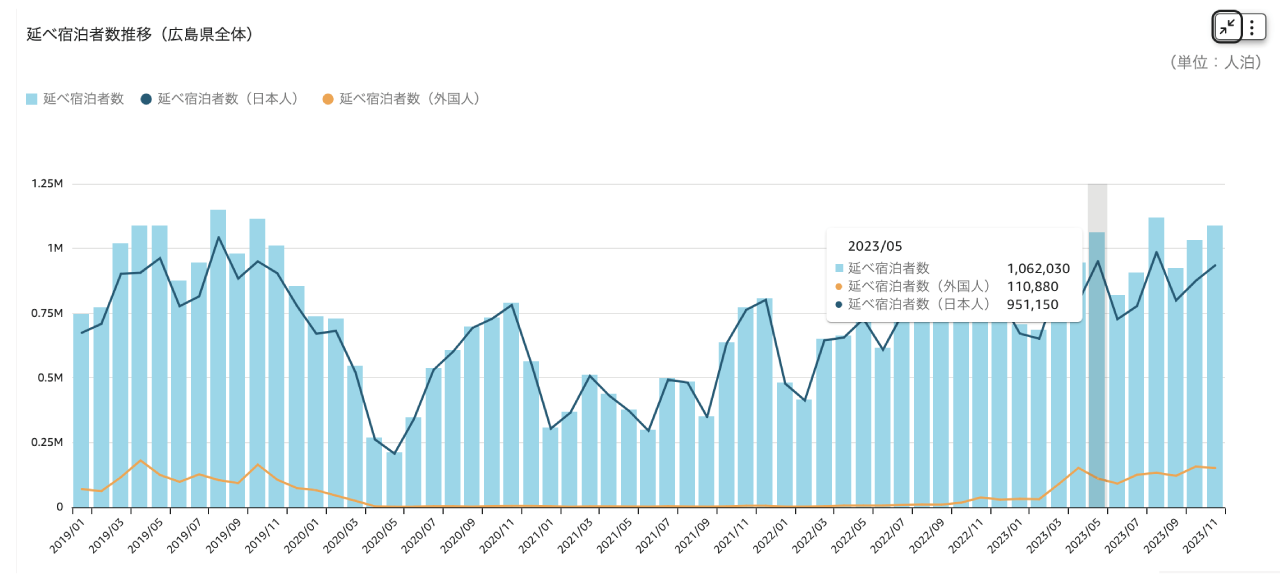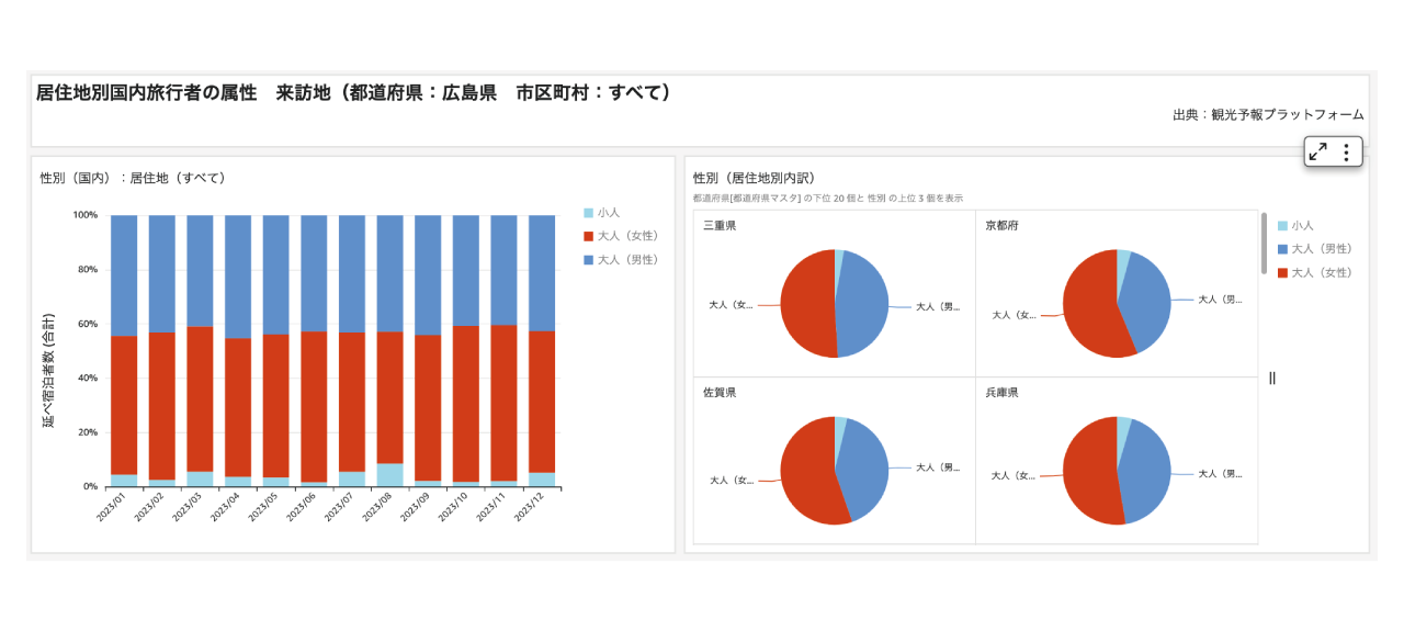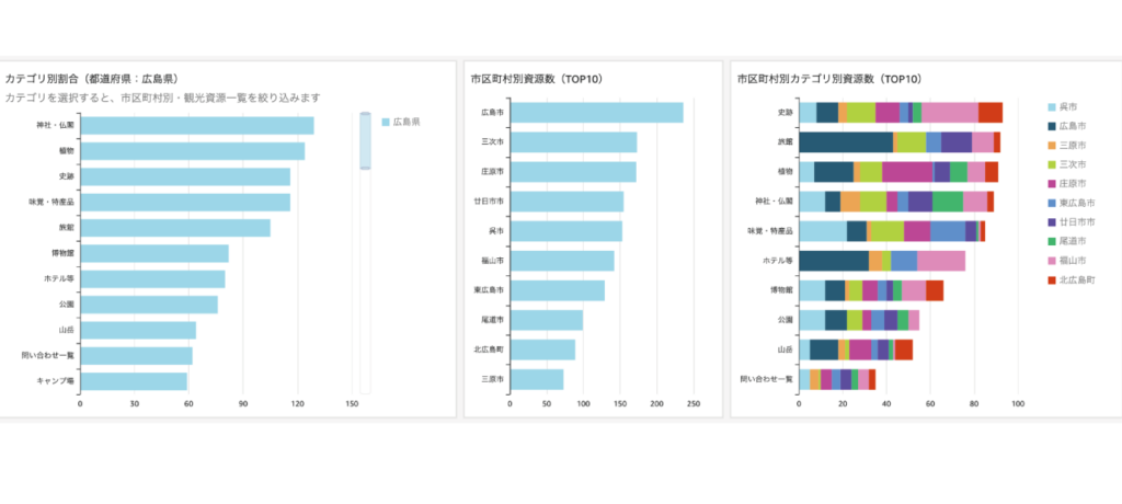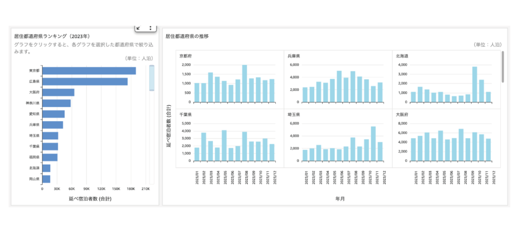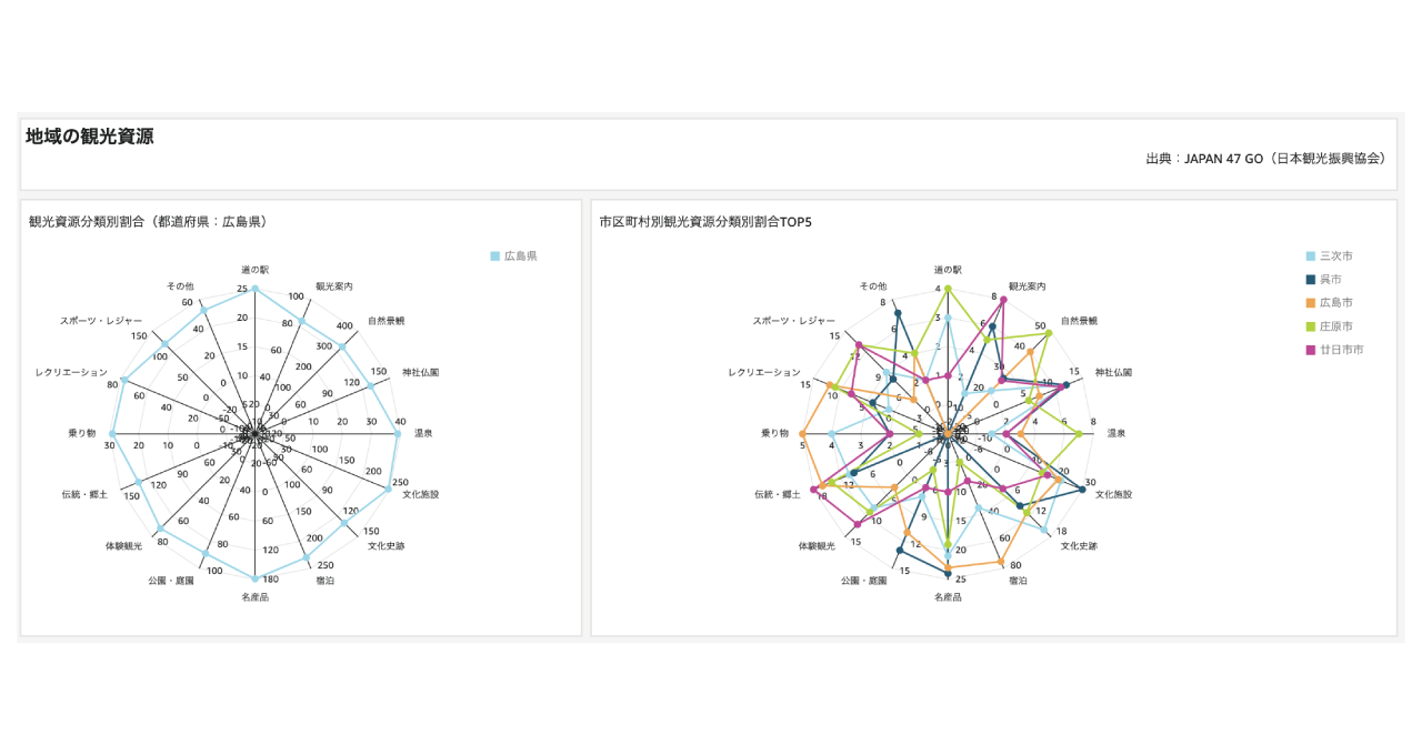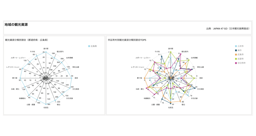 約30のデータを搭載。可視化済。観光戦略に必要なデータを素早く取得できます。